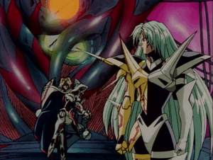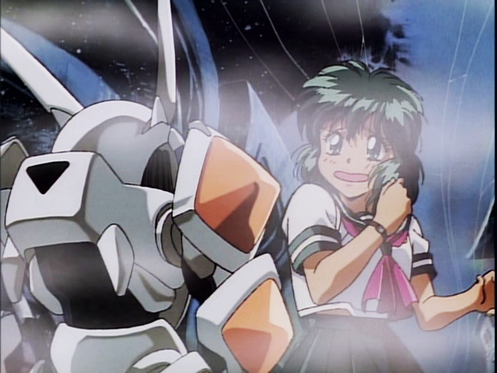 Ok, now that leaves us with rest. First of all, it’s short. Real short, almost like schoolgirl outfit skirt short. With two OVA episodes, that brings in a lot of issues that otherwise wouldn’t be the case. I said before that if I had to pick between being too short or too long, I usually prefer the former. But that’s doesn’t mean doing so is not without problems. It looks like there maybe were plans to continue this beyond just two episodes, but it never happened. So, we are left with an obvious incomplete series. Which means Nagisa spends most of the series running around being annoying. Oh boy is she annoying. I get it, if some strange intergalactic half android sadistic woman came after me, I would think I’m in for a good night. But I am a guy. To a schoolgirl, she would be terrifying, and forced into a fight by combining with some super deformed robot does not seem ideal. And if this series was longer, it would provide some more opportunity for character growth. But we get an abrupt character arch by the end of Act II which is necessary to get the final battle over. This also applies to the other characters. We don’t get enough to see their vest interest besides already accepting partnership with Iczers to fight. I would like to see all their characters further developed, especially the antagonists who are very one dimensional as is. This could be explained by the fact that Iczelion is technically a follow up from the Anime series Fight! Iczer One and Iczer Reborn. But the link between the series is extremely tenuous, so again very little explanation.