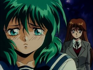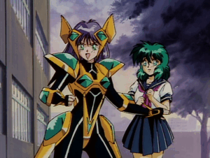 But let’s start with the positives. As mentioned before, it is animated extremely well and holds up even to today with that late 80s-90s classic action. The character designs are good (although a bit trope-ish) with the usual schoolgirls with big eyes look. I quite like the Iczelion suit designs, and although not entirely plausible, they function well. Each girl sports a similar design but differs in some way besides a simple palette swap. If you contrast this to other Henshin Hero shows of the time (such as Sailor Moon or Power Rangers) Iczelion sport distinct but subtle suit designs that are easy to follow. And being only two episodes, their transforming sequence is only shown once per character. Although I think they should have animated Nagisa’s transformation sequence twice, since the first transforming sequence was (comically) awkward.