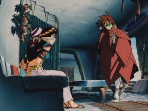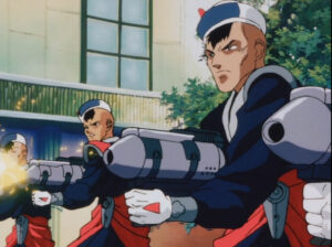 Being a tale of revenge and corporate malfeasance, the OVA strikes a serious tone with few moments of levity. Iria, being the main character and responsible for carrying the weight of the series, is no-nonsense and by the book. She is naturally skilled if a bit inexperienced, and takes her fair share of cuts and bruises when she becomes too reckless. Iria is a likeable tomboy, and maintains a mostly neutral disposition. Her brother Glenn is skilled at Bounty Hunting and obviously cares for Iria immensely. But he doesn’t have enough screen time to be much more than that. Out of all the protagonists, Fujikuro and Kei are the ones that show the most character growth; the former being a rival hunter who becomes concerned for Iria’s well being and the latter who initially views Iria as a robbery victim to a mentor to emulate. Outside of the corporation, the only antagonist is Zeiram itself. It’s an imposing design that takes inspiration from Darth Vader and the Alien Xenomorph, but as a character, remains a silent automaton.
